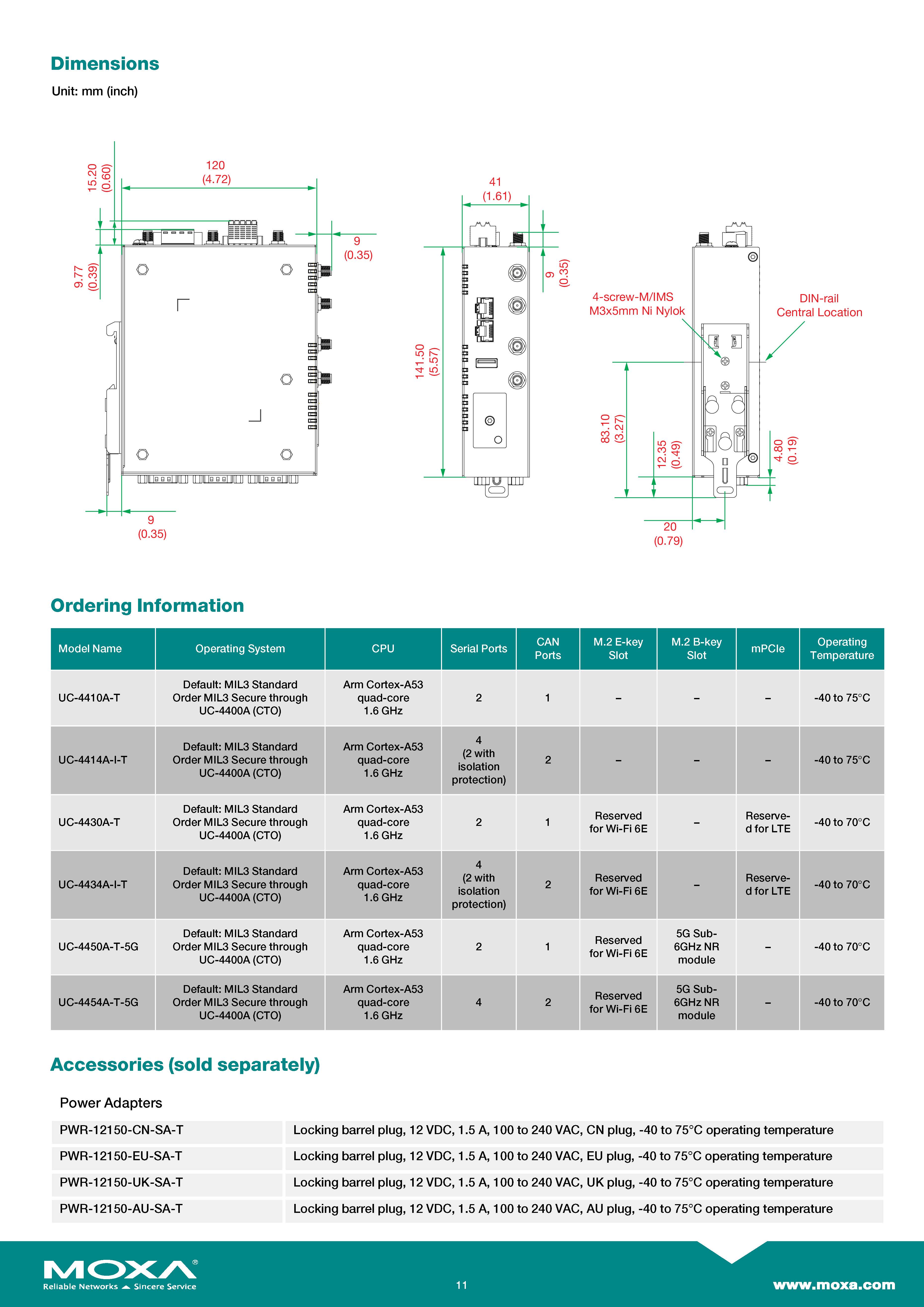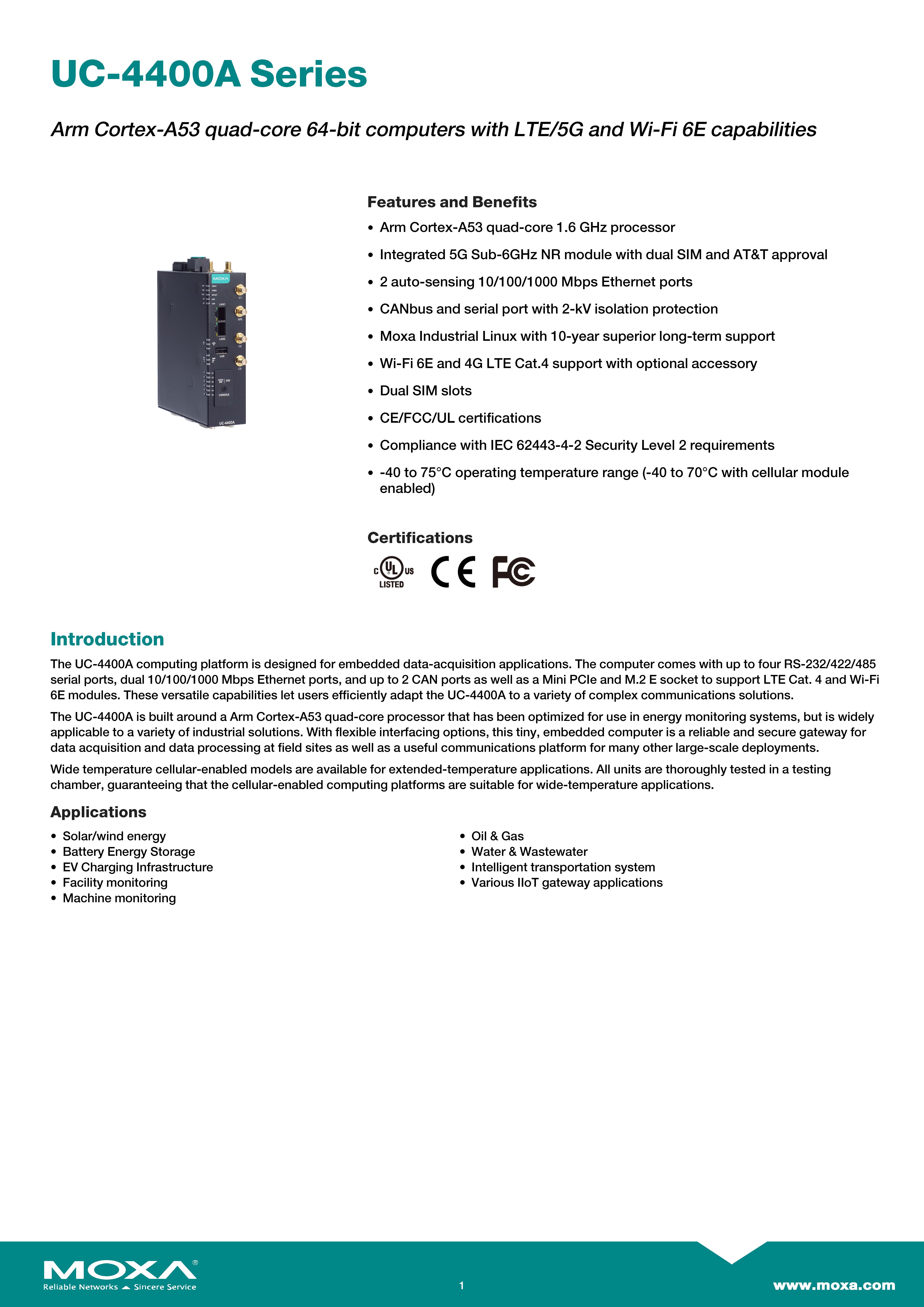 สินค้ารุ่น MOXA รุ่น UC-4410A-T รายละเอียดสินค้า คอมพิวเตอร์ฝังตัวระดับอุตสาหกรรม (Arm-Based Industrial Computer) ขับเคลื่อนด้วยหน่วยประมวลผล Arm Cortex-A53 Quad-core 1.6 GHz พร้อมระบบปฏิบัติการ Moxa Industrial Linux ในตัว โดดเด่นด้วยพอร์ตเชื่อมต่อแบบครบครันทั้ง Gigabit Ethernet 2 ช่อง, พอร์ตซีเรียล 2 ช่อง และพอร์ต CAN 1 ช่อง รองรับการเพิ่มโมดูลสื่อสารไร้สายทั้ง Wi-Fi 6E และ 4G LTE ผ่านสล็อต Mini PCIe และ M.2 ภายใต้ตัวเรือนที่ทนทานต่ออุณหภูมิการทำงานแบบกว้างพิเศษตั้งแต่ -40 ถึง 75°C ตอบโจทย์การใช้งานเป็นเกตเวย์เพื่อเก็บรวบรวมข้อมูล (Data Acquisition) และประมวลผลสำหรับระบบ IIoT ในสภาพแวดล้อมสมบุกสมบันได้อย่างเสถียรภาพสูงสุด ✅ ขอราคาพิเศษสำหรับงานโครงการติดต่อ Mobile : 063-879-9917 Line ID @aimonline *ราคาสินค้าอาจจะมีการเปลี่ยนแปลงโดยไม่แจ้งให้ทราบล่วงหน้า กรุณาติดต่อฝ่ายขายเพื่ออัพเดทราคาทราคา