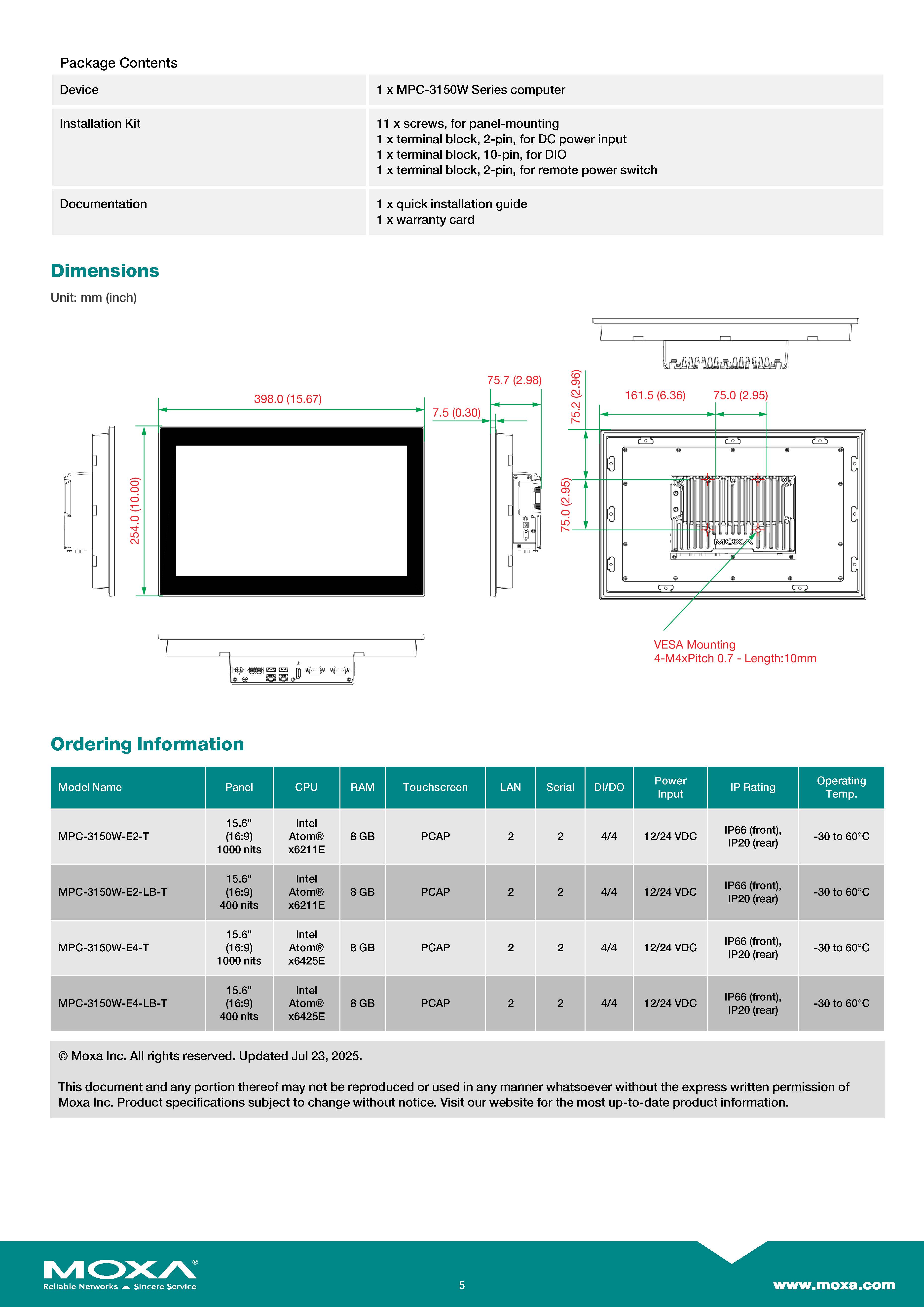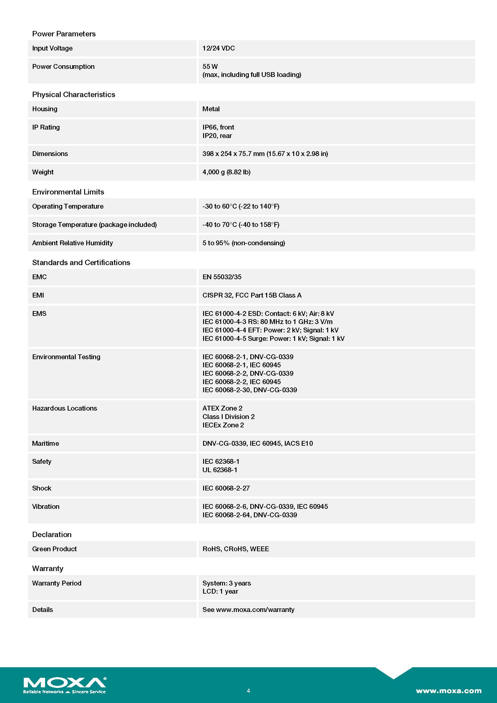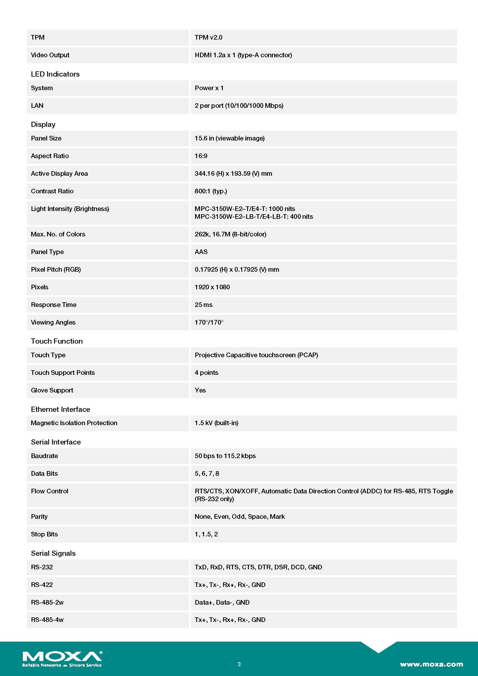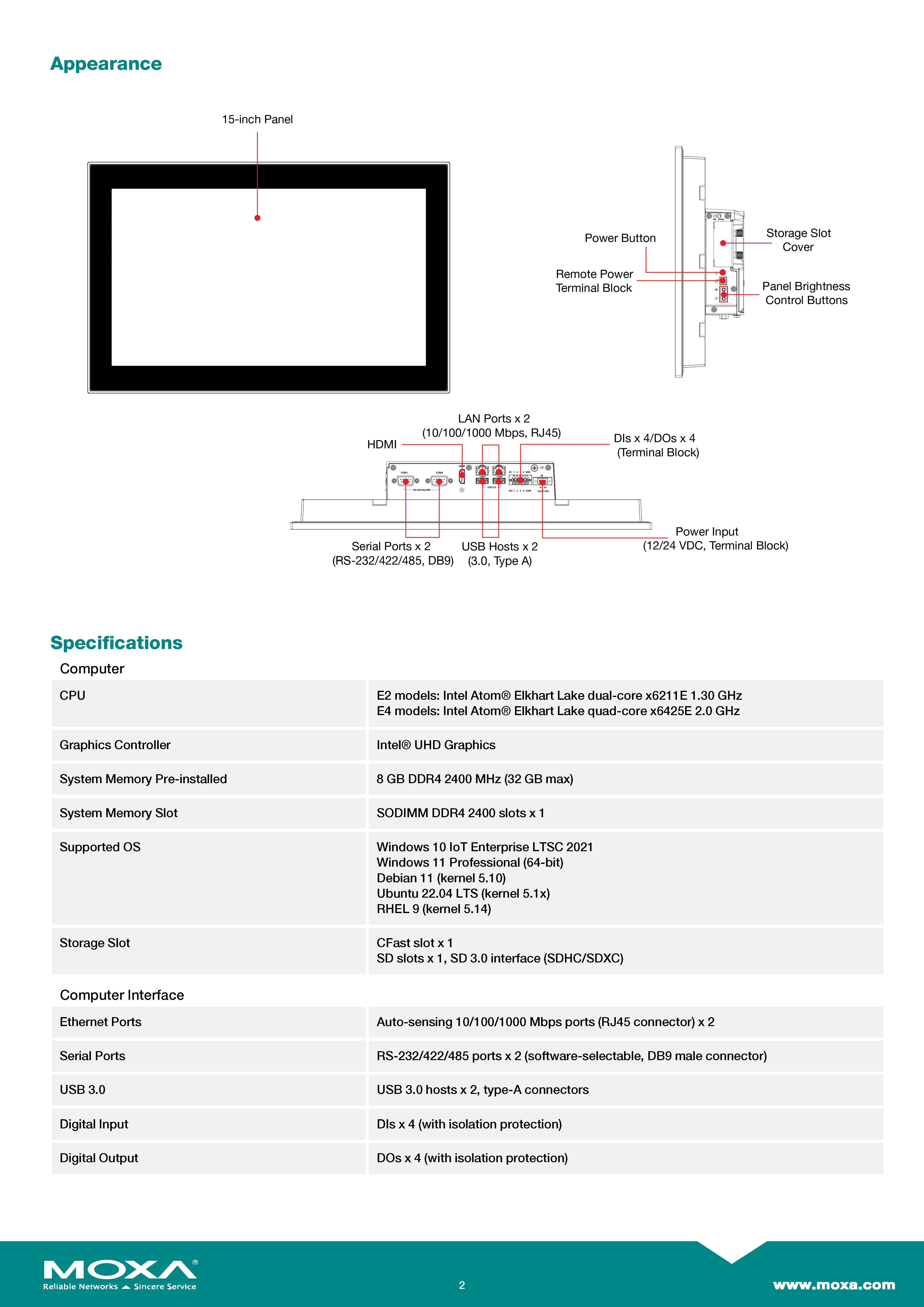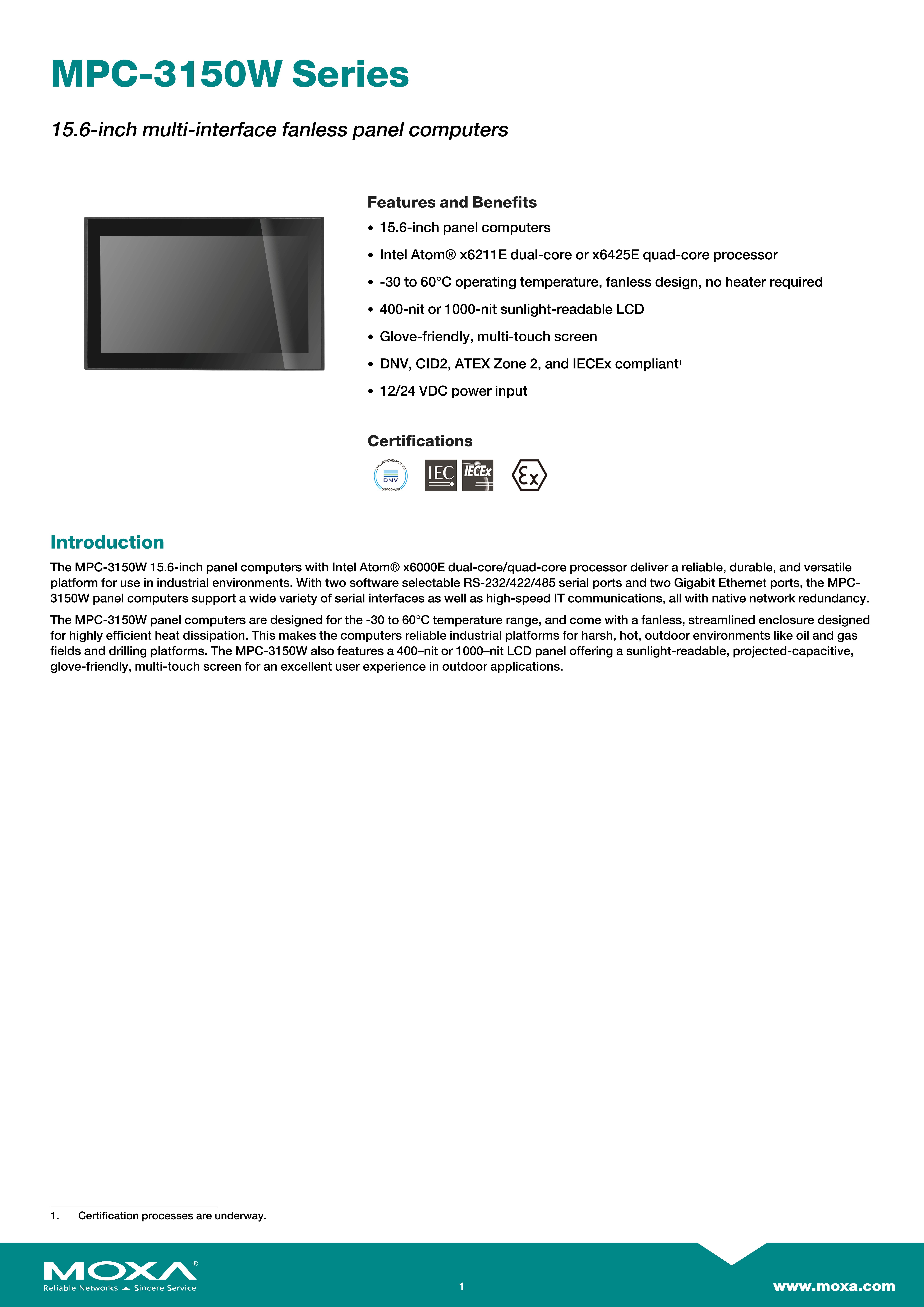 สินค้ายี่ห้อ MOXA รุ่น MPC-3150W-E2-T รายละเอียดสินค้า คอมพิวเตอร์หน้าจอสัมผัสระดับอุตสาหกรรม (Industrial Fanless Panel Computer) ขนาด 15.6 นิ้ว แบบจอกว้าง (Widescreen) ขับเคลื่อนด้วยหน่วยประมวลผล Intel Atom x6211E Dual-core พร้อม RAM 8 GB โดดเด่นด้วยหน้าจอสัมผัส Multi-touch (PCAP) สัดส่วน 16:9 ความสว่างสูงพิเศษ 1000-nits ที่สู้แสงแดดจ้าและรองรับการสัมผัสผ่านถุงมือ มาพร้อมพอร์ต Gigabit LAN 2 ช่อง, พอร์ตซีเรียล 2 ช่อง และ USB 3.0 ภายใต้ตัวเรือนไร้พัดลมมาตรฐานกันน้ำกันฝุ่น IP66 (ด้านหน้า) ทนทานต่ออุณหภูมิสุดขั้วตั้งแต่ -30 ถึง 60°C (-T) และผ่านมาตรฐานความปลอดภัยระดับโลกทั้ง ATEX Zone 2, CID2, IECEx และ DNV ตอบโจทย์การเป็นหน้าจอสั่งการ (HMI) ไซส์ใหญ่สำหรับงานแท่นขุดเจาะปิโตรเลียมและอุตสาหกรรมเดินเรือที่สมบุกสมบันได้อย่างสมบูรณ์แบบ✅ ขอราคาพิเศษสำหรับงานโครงการติดต่อ Mobile : 063-879-9917 Line ID @aimonline *ราคาสินค้าอาจจะมีการเปลี่ยนแปลงโดยไม่แจ้งให้ทราบล่วงหน้า รบกวนติดต่อฝ่ายขายเพื่ออัพเดทราคา