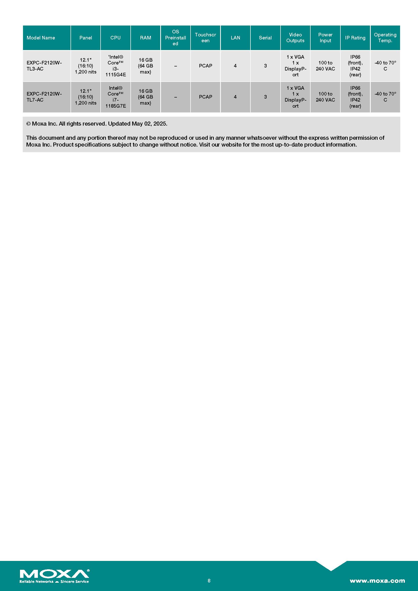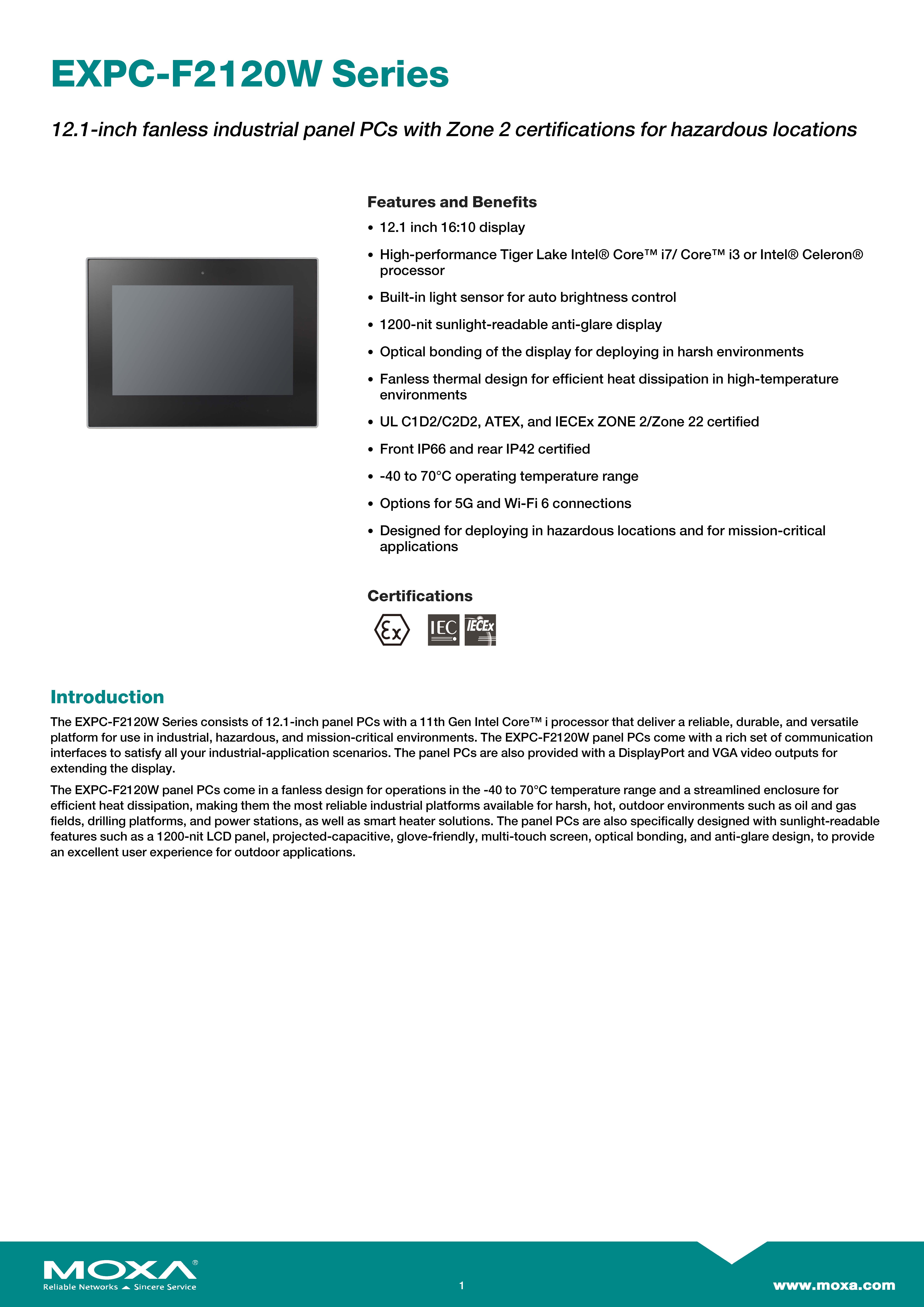 สินค้ายี่ห้อ MOXA รุ่น EXPC-F2120W-TL1-DC รายละเอียดสินค้า คอมพิวเตอร์หน้าจอสัมผัสระดับอุตสาหกรรมสำหรับพื้นที่อันตราย (Hazardous Area Panel PC) ขนาด 12.1 นิ้ว ขับเคลื่อนด้วยหน่วยประมวลผล Intel Celeron 6305E พร้อม RAM จุใจ 16 GB โดดเด่นด้วยหน้าจอสัมผัส Multi-touch (PCAP) ความสว่างสูงทะลุพิกัด 1200-nits ที่สู้แสงแดดจัดกลางแจ้งได้สบายๆ มาพร้อมพอร์ตเชื่อมต่อจัดเต็มทั้ง Gigabit LAN 4 ช่อง และพอร์ตซีเรียล 3 ช่อง ภายใต้ตัวเรือนอลูมิเนียมไร้พัดลมที่รองรับไฟเข้า 9-36 VDC ทนทานต่ออุณหภูมิสุดขั้วตั้งแต่ -40 ถึง 70°C พร้อมมาตรฐานกันน้ำกันฝุ่น IP66 (ด้านหน้า) และผ่านมาตรฐานความปลอดภัยระดับโลกขั้นสูงสุดทั้ง ATEX, IECEx Zone 2 และ UL C1D2/C2D2 ตอบโจทย์การเป็นหน้าจอสั่งการ (HMI) ขั้นเทพสำหรับงานแท่นขุดเจาะน้ำมัน โรงกลั่น และอุตสาหกรรมปิโตรเคมีได้อย่างสมบูรณ์แบบ ✅ ขอราคาพิเศษสำหรับงานโครงการติดต่อ Mobile : 063-879-9917 Line ID @aimonline *ราคาสินค้าอาจจะมีการเปลี่ยนแปลงโดยไม่แจ้งให้ทราบล่วงหน้า รบกวนติดต่อฝ่ายขายเพื่ออัพเดทราคา