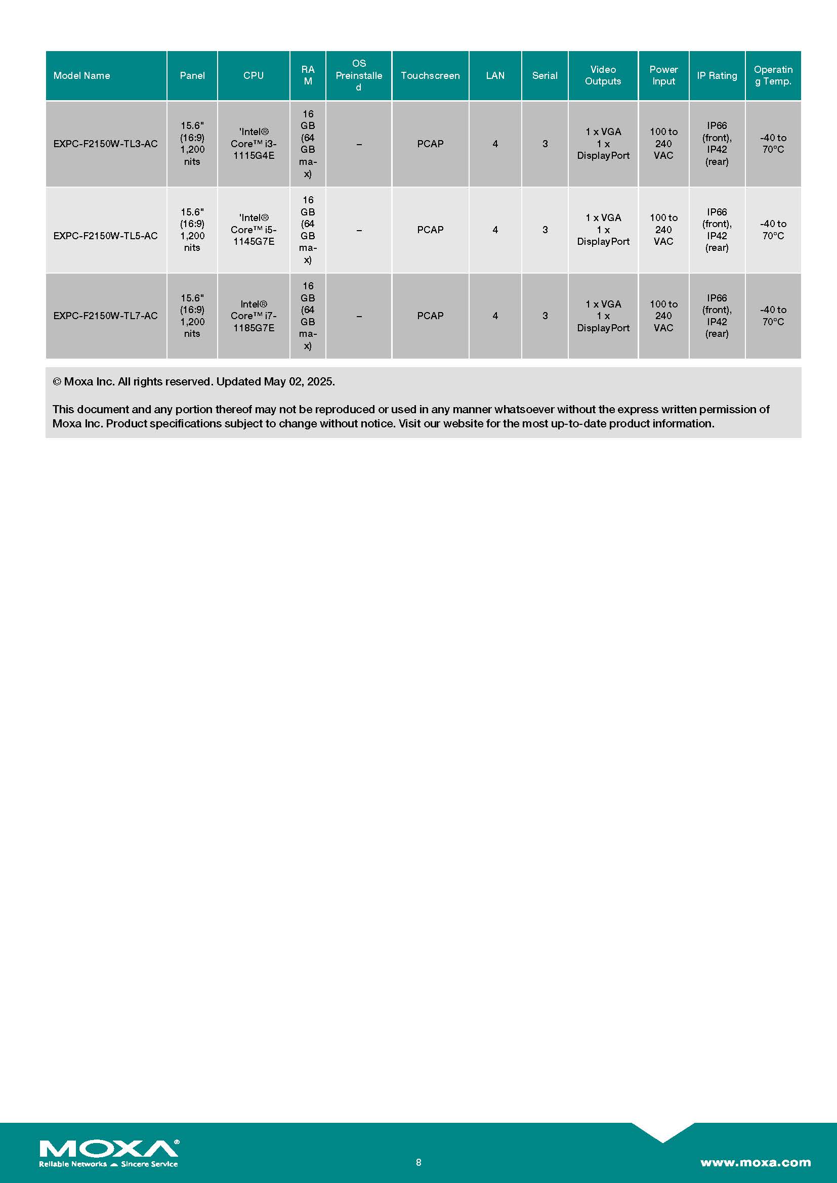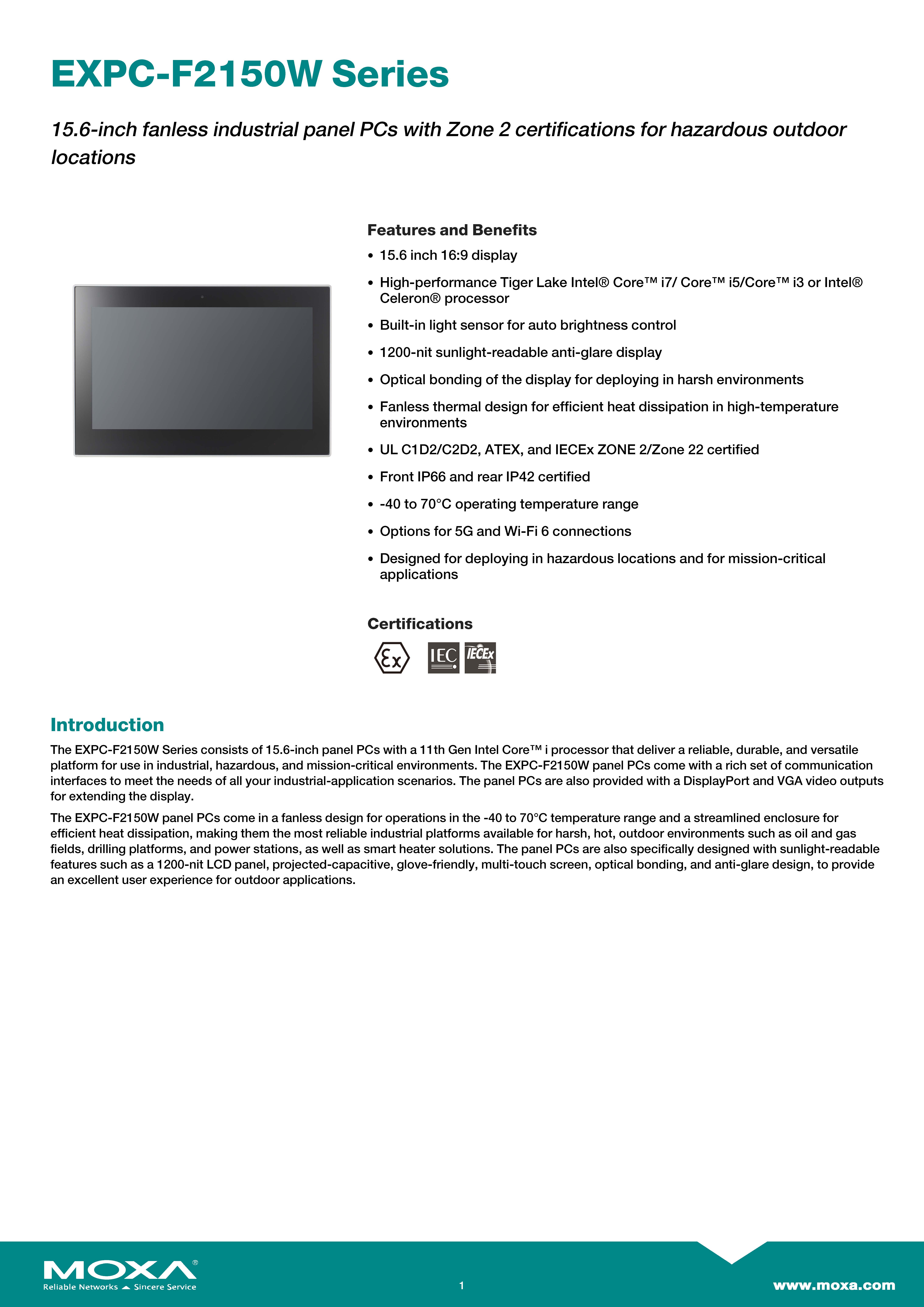 สินค้ายี่ห้อ MOXA รุ่น EXPC-F2150W-TL3-DC รายละเอียดสินค้า คอมพิวเตอร์หน้าจอสัมผัสระดับอุตสาหกรรมสำหรับพื้นที่อันตราย (Hazardous Area Panel PC) แบบจอกว้างขนาด 15.6 นิ้ว (สัดส่วน 16:9) ขับเคลื่อนด้วยขุมพลังประมวลผล Intel Core i3-1115G4E (Gen 11) พร้อม RAM จุใจ 16 GB โดดเด่นด้วยหน้าจอสัมผัส Multi-touch (PCAP) ความสว่างสูงทะลุพิกัด 1200-nits ที่อ่านค่าได้ชัดเจนแม้อยู่กลางแสงแดดจ้า มาพร้อมพอร์ตเชื่อมต่อเครือข่ายจัดเต็มทั้ง Gigabit LAN 4 ช่อง และพอร์ตซีเรียล 3 ช่อง ภายใต้ตัวเรือนอลูมิเนียมไร้พัดลมที่รองรับไฟเข้า 9-36 VDC ทนทานต่ออุณหภูมิสุดขั้วตั้งแต่ -40 ถึง 70°C พร้อมมาตรฐานกันน้ำกันฝุ่น IP66 (ด้านหน้า) และการันตีด้วยมาตรฐานความปลอดภัยระดับสากลสูงสุดทั้ง ATEX, IECEx Zone 2 และ UL C1D2/C2D2 ตอบโจทย์การเป็นหน้าจอสั่งการ (HMI) ไซส์ใหญ่สำหรับงานแท่นขุดเจาะน้ำมัน โรงกลั่น และอุตสาหกรรมปิโตรเคมีกลางแจ้งได้อย่างสมบูรณ์แบบ ✅ ขอราคาพิเศษสำหรับงานโครงการติดต่อ Mobile : 063-879-9917 Line ID @aimonline *ราคาสินค้าอาจจะมีการเปลี่ยนแปลงโดยไม่แจ้งให้ทราบล่วงหน้า กรุณาติดต่อฝ่ายขายเพื่ออัพเดทราคา