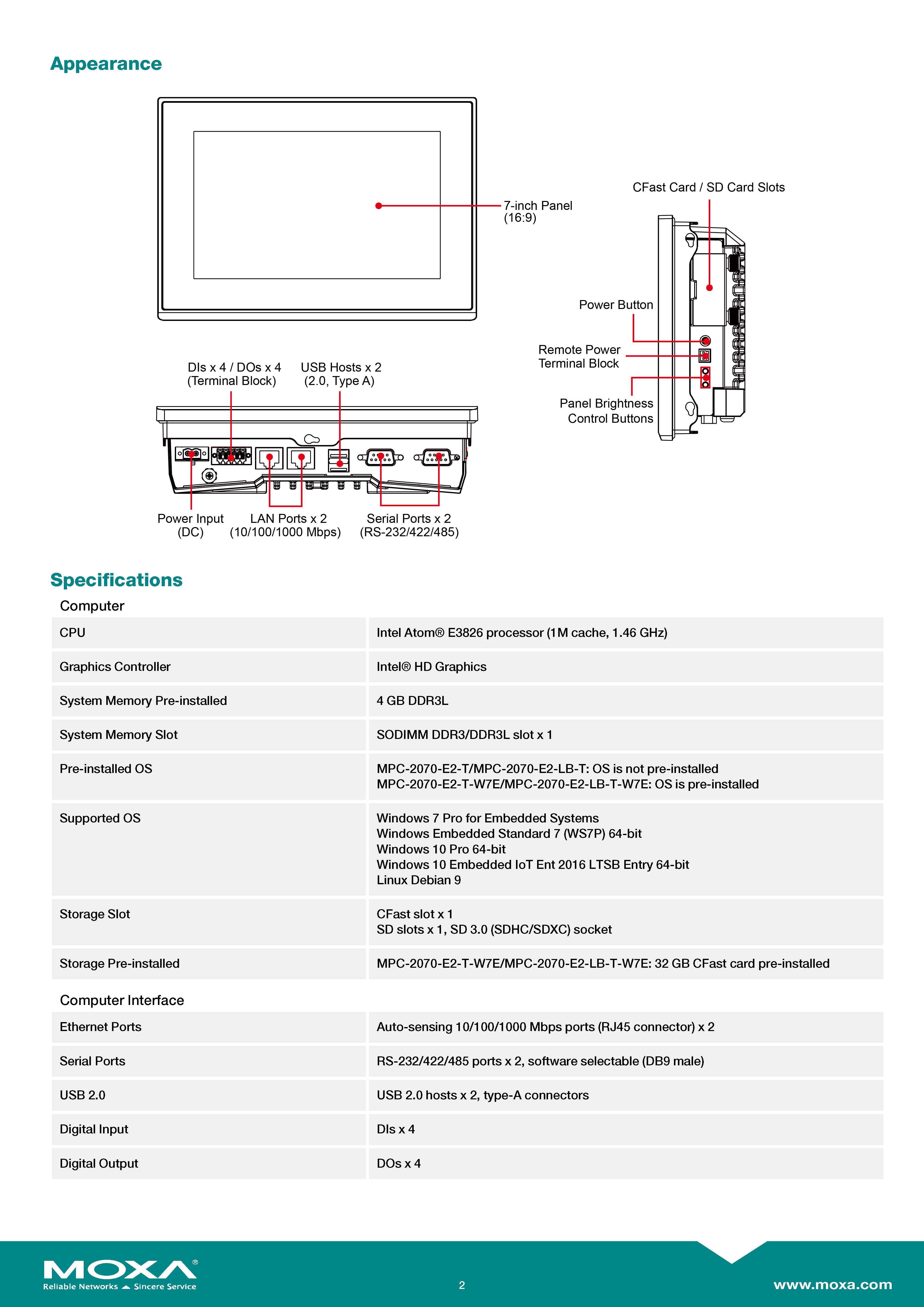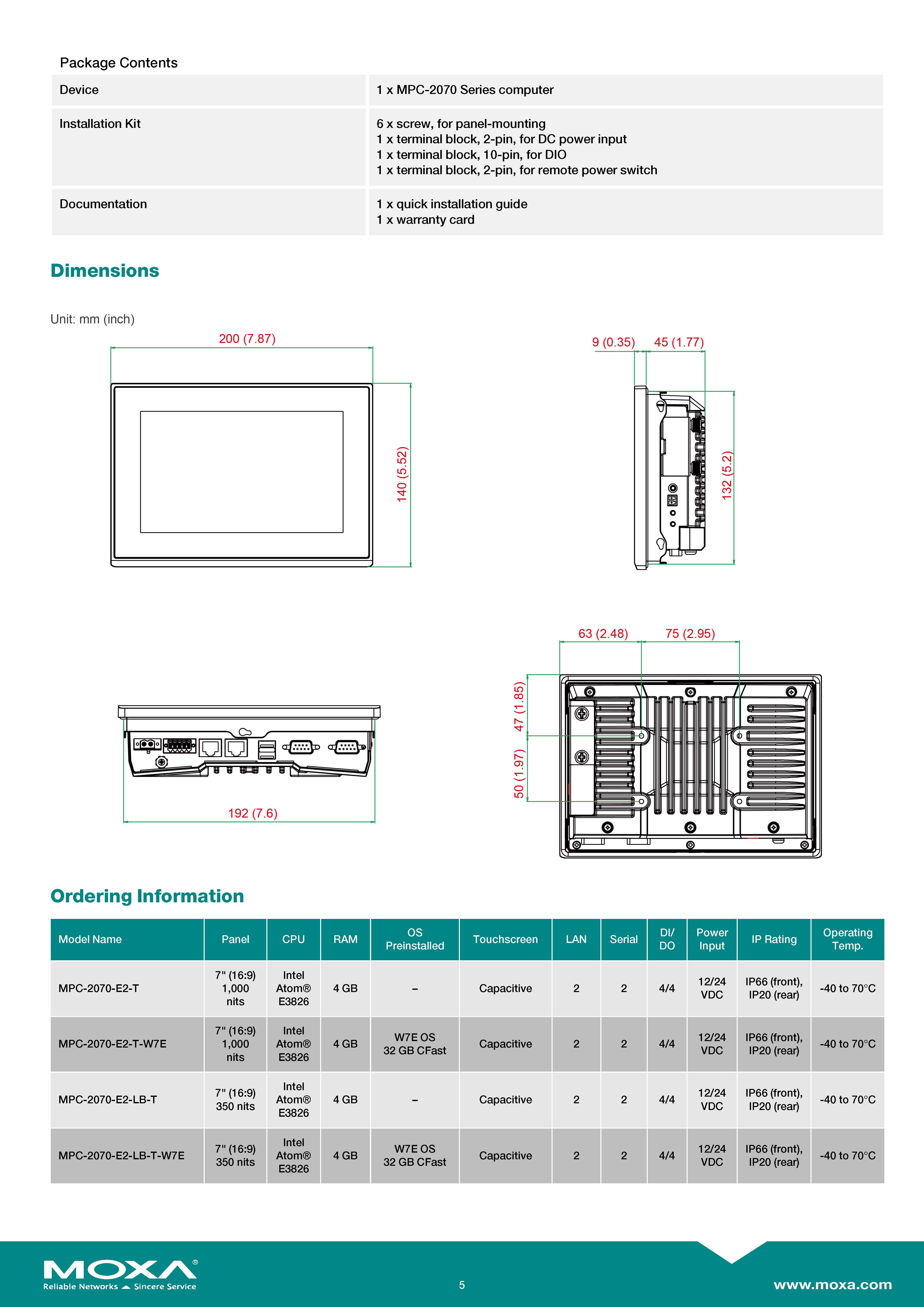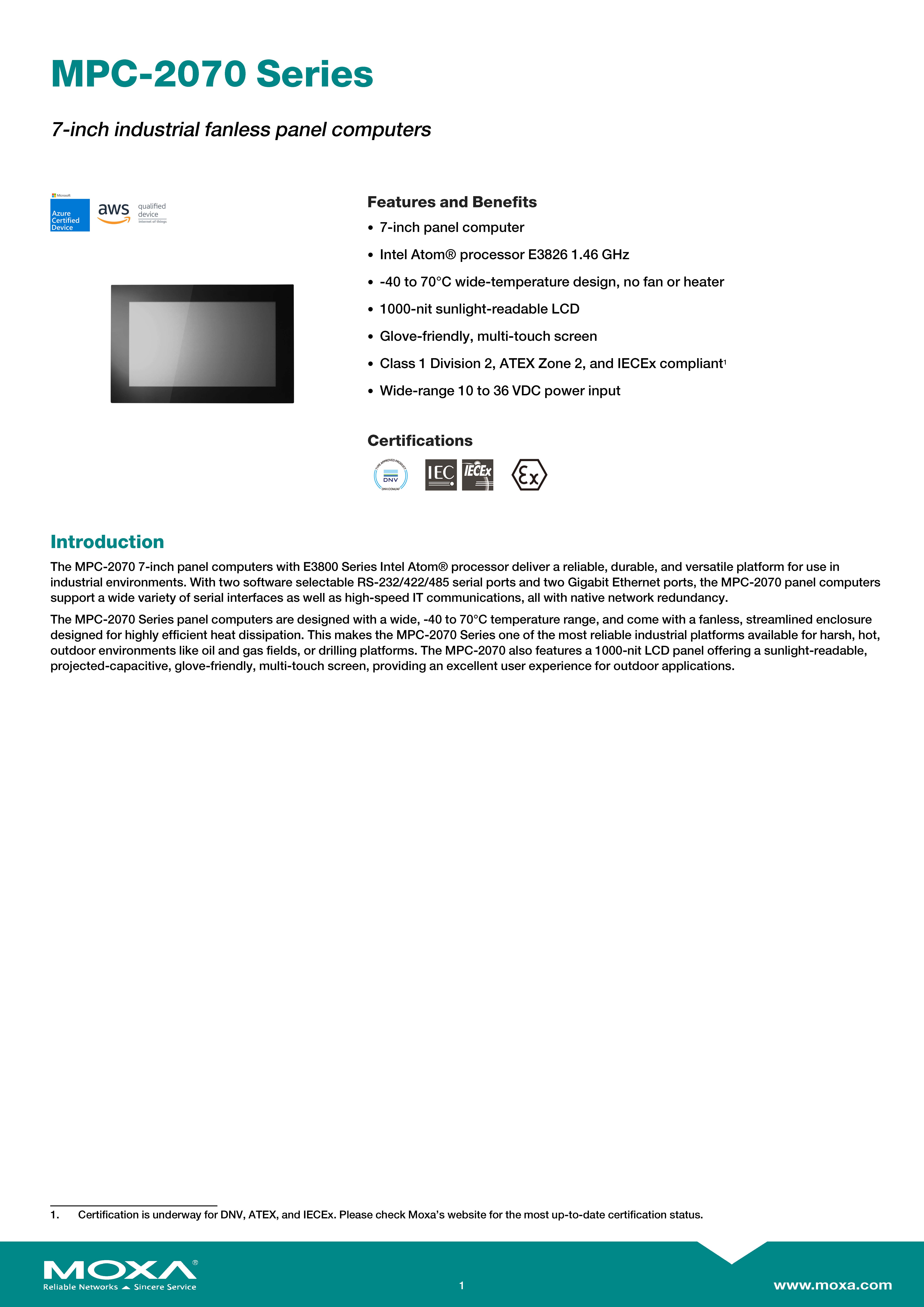 สินค้ายี่ห้อ MOXA รุ่น MPC-2070-E2-T รายละเอียดสินค้า คอมพิวเตอร์หน้าจอสัมผัสระดับอุตสาหกรรม (Industrial Fanless Panel Computer) ขนาด 7 นิ้ว ขับเคลื่อนด้วยหน่วยประมวลผล Intel Atom E3826 Dual-core พร้อม RAM 4 GB โดดเด่นด้วยหน้าจอสัมผัสแบบ Multi-touch (PCAP) ความสว่างสูงพิเศษ 1000-nits ที่สู้แสงแดดจ้าและรองรับการใช้งานขณะสวมถุงมือ มาพร้อมพอร์ตเชื่อมต่อ Gigabit LAN 2 ช่อง, พอร์ตซีเรียล 2 ช่อง และพอร์ต I/O ดิจิทัล (4 DI / 4 DO) ภายใต้ตัวเรือนไร้พัดลมมาตรฐานกันน้ำกันฝุ่น IP66 (ด้านหน้า) ที่รองรับไฟเข้า 10-36 VDC ทนทานต่ออุณหภูมิสุดขั้วตั้งแต่ -40 ถึง 70°C (-T) และผ่านมาตรฐานความปลอดภัยระดับสากลทั้ง ATEX Zone 2, CID2 และ DNV ตอบโจทย์การเป็นหน้าจอสั่งการ (HMI) ที่อึดถึกทนสำหรับสภาพแวดล้อมสมบุกสมบัน งานแท่นขุดเจาะปิโตรเลียม และอุตสาหกรรมเดินเรือได้อย่างสมบูรณ์แบบ ✅ ขอราคาพิเศษสำหรับงานโครงการติดต่อ Mobile : 063-879-9917 Line ID @aimonline *ราคาสินค้าอาจจะมีการเปลี่ยนแปลงโดยไม่แจ้งให้ทราบล่วงหน้า รบกวนติดต่อฝ่ายขายเพื่ออัพเดทราคา