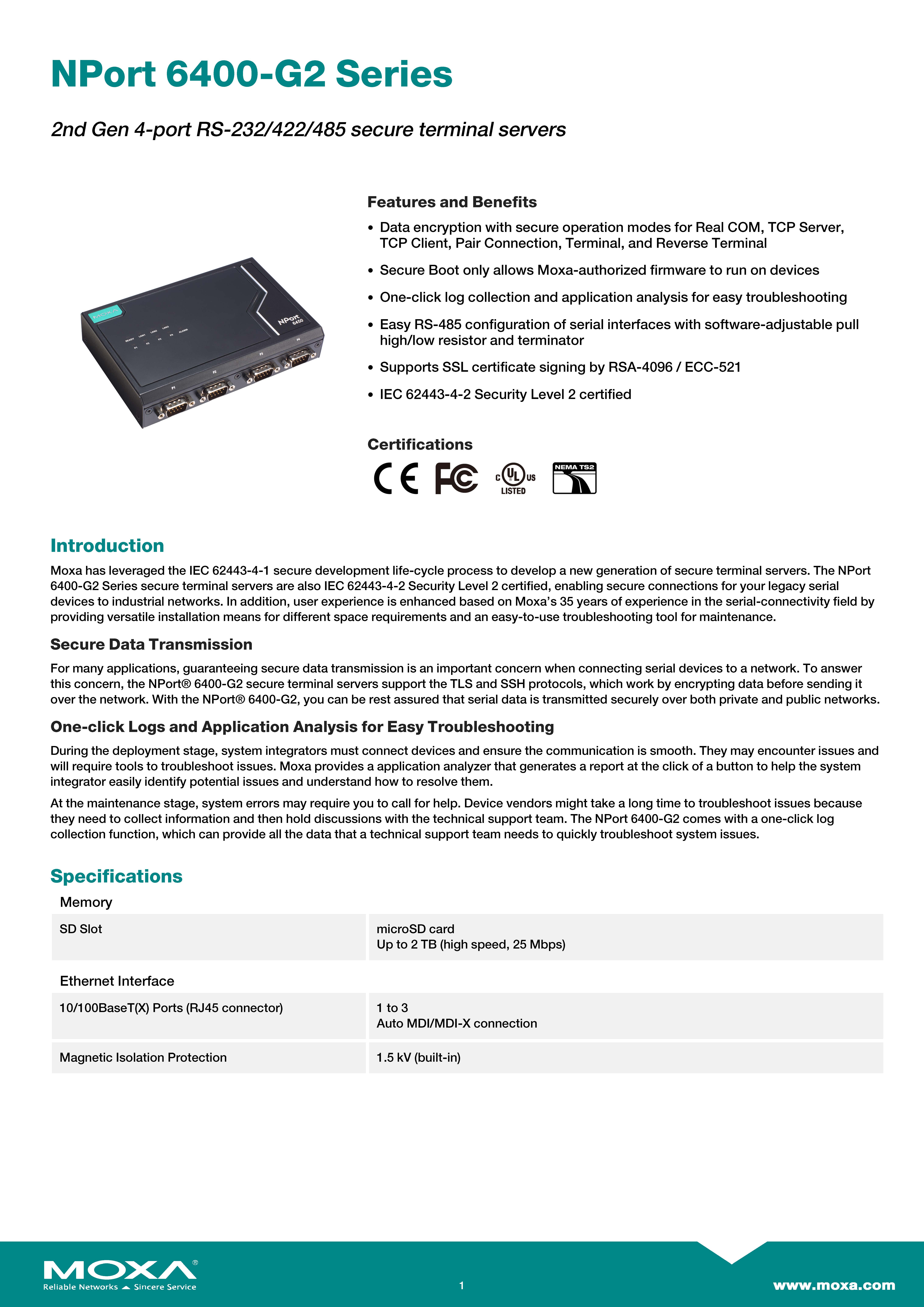 สินค้ายี่ห้อ MOXA รุ่น NPort 6450-G2 รายละเอียดสินค้า เซิร์ฟเวอร์แปลงสัญญาณซีเรียลระดับอุตสาหกรรม (Secure Terminal Server) แบบ 4 พอร์ต โดดเด่นด้วยการเป็นอุปกรณ์ซีเรียลเซิร์ฟเวอร์รุ่นแรกของโลกที่ผ่านมาตรฐานความปลอดภัยทางไซเบอร์สูงสุดระดับ IEC 62443-4-2 Level 2 มาพร้อมพอร์ตเชื่อมต่อ RS-232/422/485 จำนวน 4 ช่อง และพอร์ตเครือข่าย Fast Ethernet รองรับการเข้ารหัสข้อมูลขั้นสูงแบบ TLS v1.3 และ SSH พร้อมระบบ Secure Boot ในตัว ภายใต้ตัวเรือนโลหะกะทัดรัดที่ทนทานต่ออุณหภูมิการทำงาน -10 ถึง 60°C ตอบโจทย์การเชื่อมต่ออุปกรณ์ซีเรียลแบบดั้งเดิม (Legacy Devices) เข้าสู่ระบบเครือข่ายอุตสาหกรรมยุคใหม่ได้อย่างราบรื่นและปลอดภัยไร้กังวลจากการถูกโจมตีทางไซเบอร์ ✅ ขอราคาพิเศษสำหรับงานโครงการติดต่อ Mobile : 063-879-9917 Line ID @aimonline *ราคาสินค้าอาจจะมีการเปลี่ยนแปลงโดยไม่แจ้งให้ทราบล่วงหน้า รบกวนติดต่อฝ่ายขายเพื่ออัพเดทราคา