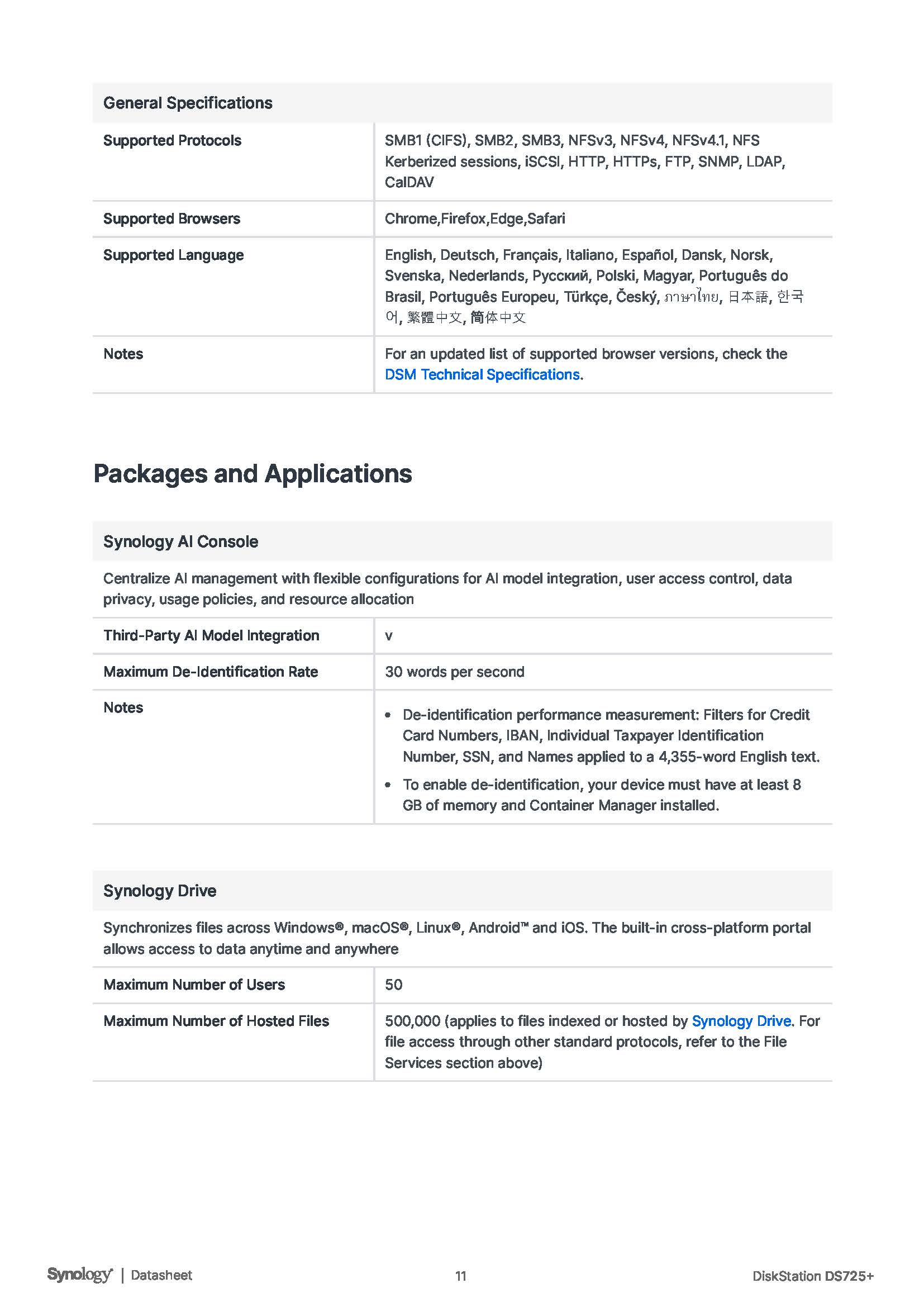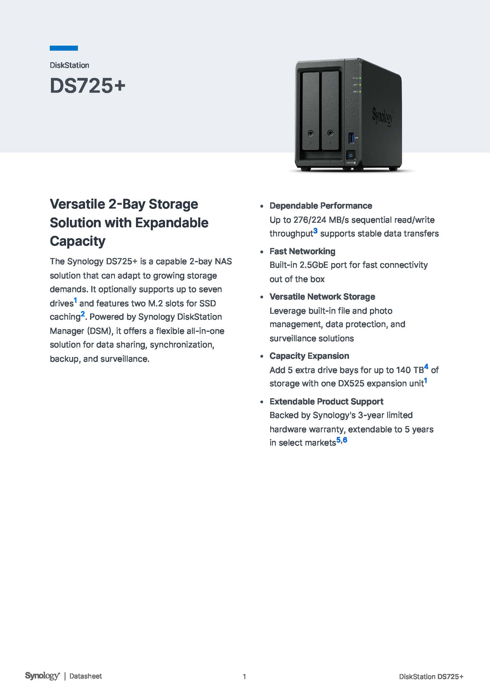 สินค้ายี่ห้อ Synology รุ่น DS725+ รายละเอียดสินค้า อุปกรณ์จัดเก็บข้อมูลบนเครือข่ายอัจฉริยะ (Scalable 2-Bay NAS) จาก Synology รุ่น DS725+ ขับเคลื่อนด้วยขุมพลังประมวลผล AMD Ryzen R1600 Dual-core พร้อม RAM แบบ ECC ขนาด 4 GB (อัปเกรดได้สูงสุด 32 GB) ✅ ขอราคาพิเศษสำหรับงานโครงการติดต่อ Mobile : 063-879-9917 Line ID @aimonline *ราคาสินค้าอาจจะมีการเปลี่ยนแปลงโดยไม่แจ้งให้ทราบล่วงหน้า กรุณาติดต่อฝ่ายขายเพื่ออัพเดทราคา